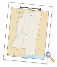 This page creates physical geography maps of Mississippi. You can select from several presentation options, including the map’s context and legend options. Black and white is usually the best for black toner laser printers and photocopiers. This allows to you configure the way Mississippi is presented so that you can use the map for exactly what you need it for - as a reference, a quiz or something for students to annotate while doing research.