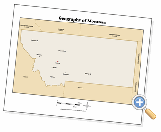 This page creates human geography maps of Montana. You can select from several presentation options, including the map’s context and legend options. Black and white is usually the best for black toner laser printers and photocopiers. This allows to you configure the way Montana is presented so that you can use the map for exactly what you need it for - as a reference, a quiz or something for students to annotate while doing research.