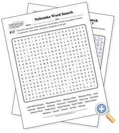 This page creates a word search puzzle using the locations from a map of Nebraska. Word searches are good tools for helping students memorize a list of locations and how they are spelled.