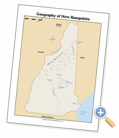 This page creates physical geography maps of New Hampshire. You can select from several presentation options, including the map’s context and legend options. Black and white is usually the best for black toner laser printers and photocopiers. This allows to you configure the way New Hampshire is presented so that you can use the map for exactly what you need it for - as a reference, a quiz or something for students to annotate while doing research.