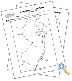 This page creates human geography maps of New Jersey. You can select from several presentation options, including the map’s context and legend options. Black and white is usually the best for black toner laser printers and photocopiers. This allows to you configure the way New Jersey is presented so that you can use the map for exactly what you need it for - as a reference, a quiz or something for students to annotate while doing research.