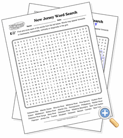 This page creates a word search puzzle using the locations from a map of New Jersey. Word searches are good tools for helping students memorize a list of locations and how they are spelled.