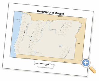 This page creates physical geography maps of Oregon. You can select from several presentation options, including the map’s context and legend options. Black and white is usually the best for black toner laser printers and photocopiers. This allows to you configure the way Oregon is presented so that you can use the map for exactly what you need it for - as a reference, a quiz or something for students to annotate while doing research.
