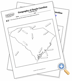 This page creates human geography maps of South Carolina. You can select from several presentation options, including the map’s context and legend options. Black and white is usually the best for black toner laser printers and photocopiers. This allows to you configure the way South Carolina is presented so that you can use the map for exactly what you need it for - as a reference, a quiz or something for students to annotate while doing research.