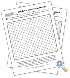 This page creates a word search puzzle using the locations from a map of South Carolina. Word searches are good tools for helping students memorize a list of locations and how they are spelled.
