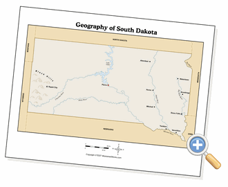 This page creates comprehensive geography maps of South Dakota. You can select from several presentation options, including the map’s context and legend options. Black and white is usually the best for black toner laser printers and photocopiers. This allows to you configure the way South Dakota is presented so that you can use the map for exactly what you need it for - as a reference, a quiz or something for students to annotate while doing research.