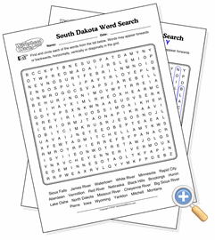 This page creates a word search puzzle using the locations from a map of South Dakota. Word searches are good tools for helping students memorize a list of locations and how they are spelled.