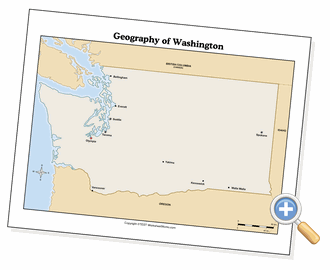 This page creates human geography maps of Washington. You can select from several presentation options, including the map’s context and legend options. Black and white is usually the best for black toner laser printers and photocopiers. This allows to you configure the way Washington is presented so that you can use the map for exactly what you need it for - as a reference, a quiz or something for students to annotate while doing research.