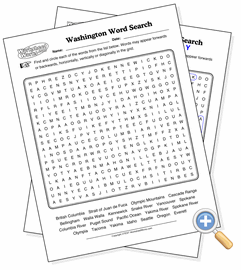 This page creates a word search puzzle using the locations from a map of Washington. Word searches are good tools for helping students memorize a list of locations and how they are spelled.