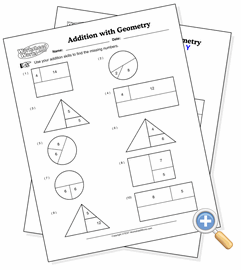 This is an interesting basic application of addition and subtraction. Each problem is a shape that is divided into two halves, with one half further divided into two or three pieces. All pieces except one is filled with integers that represent their size. The objective is for the student to deduce the size of the missing piece by either using addition or subtraction.