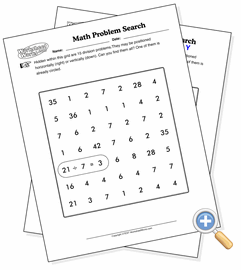 This is a word-search type of puzzle but with math problems hidden in the grid instead of words. The problems only read forward, and you can make it a little harder to search by selecting diagonals too.