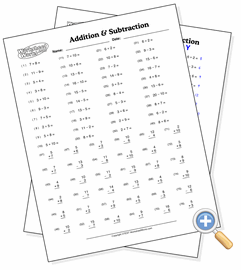 This worksheet mixes addition and subtraction to give the student practice in switching between the two operations. We recommend using relatively low maximum parameter values so that the problems are easy and the student can be more aware of sign switches.