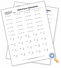 This worksheet presents subtraction problems that start with values as high as ten. The answer to each problem will be determined by which numbers you want to subtract with so that the result is never below zero.