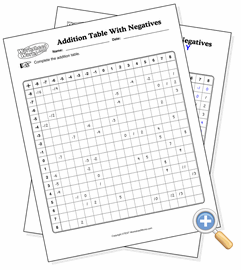 This addition table includes negative numbers, so students need to know the number line well to complete it.