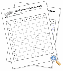 This multiplication table only uses factors of the multiples you choose. This approach is helpful to strengthen the memorization of certain multiples.