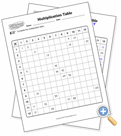 This is a standard multiplication table, with a few additional options that can be used to make it more interesting. Most notably, you can randomize the entire table so that it cannot be completed by just writing in the multiples.
