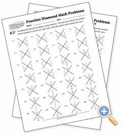 These problems are beginning factoring problems like the Diamond Problems, but involve fractions. The left and right fractions in the problem are the factors. The top fraction is for the product, and the bottom is for the sum.