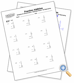 These problems involve the addition of mixed fractions having uncommon denominators. The student will need to both modify the fractions and add them separately, but no grouping is required.