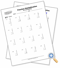These problems are the first that students new to fraction multiplication will need to learn. The result of the multiplication operation will not reduce so the only task here is to multiply both the numerators and denominators to have the result.