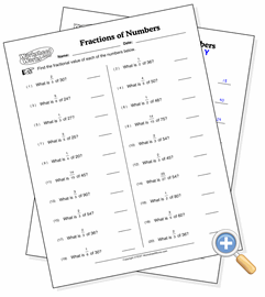 This worksheet asks the student to compute a whole number that is a fraction of another whole number.