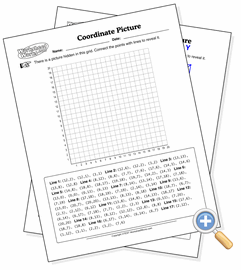 This worksheet provides the student with four series of points, with their task being to plot them on the graph and connect the dots, revealing a picture. It’s kind of like connect the dots, but with grid coordinates.