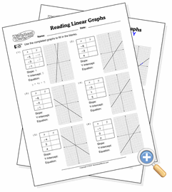 This exercise is the reverse of Graphing Linear Equations. Instead of being given the equation and asked to graph the line, the line is given and the student is asked to derive information about the equation, possibly even the equation itself. This is great practice for students to reinforce what they already know about graphing linear equations.