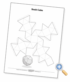 The snub cube, also known as a snub cuboctahedron, is an Archimedean solid comprised of 6 square faces, 32 equilateral triangle faces, 24 vertices and 60 edges. It is a very challenging model to construct.