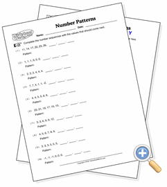 Finding the pattern in numbers is a skill that lays the foundation for data analysis abilities later. The numbers in these series range from simple addition or subtraction patterns (at the easy level) to rolling mixed computations (at the complex level). The highest level may prove to be a good challenge to students as far along as sixth grade. The worksheet can also be configured to ask the student to express the pattern in words. Problems tend to become more difficult towards the end of the worksheet.