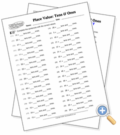 In this worksheet, the student completes a sentence by filling in the place values that make up a number.