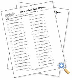In this worksheet, the student completes a sentence by filling in the number or place value that is missing.