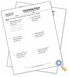These problems ask students to find the final price of various items after discounts and taxes are applied.
