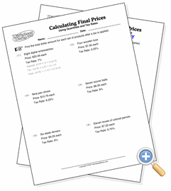 These problems ask for the totals of sets of items after taxes are applied.