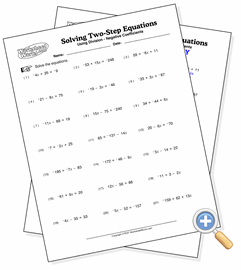 These two-step equations are solved by using addition and subtraction, then division to eliminate a coefficient. All problems resolve to integers. You can adjust the difficulty of the problems by increasing the values size, using negative coefficients and flipping the sides of the equations.