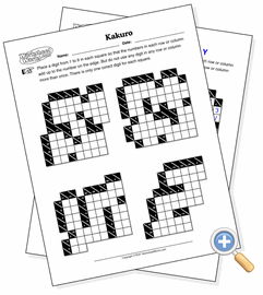 These are standard-sized Kakuro puzzles. They take more patience than the mini puzzles to complete, but they can be made easier by revealing some values from the solution.