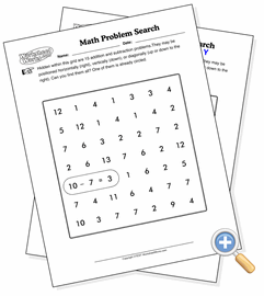 This is a word-search type of puzzle but with math problems hidden in the grid instead of words. The problems only read forward, and you can make it a little harder to search by selecting diagonals too.
