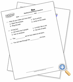 These are reading comprehension questions to go along with the passage. There are three types of questions that can be selected, and the page will be randomly filled with those types.