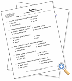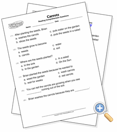 These are reading comprehension questions to go along with the passage. There are three types of questions that can be selected, and the page will be randomly filled with those types.