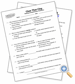 These are reading comprehension questions to go along with the passage. There are three types of questions that can be selected, and the page will be randomly filled with those types.