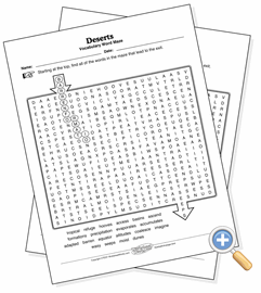 This is a word maze using the vocabulary words found in the article. Beginning from the top left, students must find the path that spells out all of the words. The maze winds its way around the grid until it reaches the bottom right exit, using the exact number of characters used byt he words. To make things harder, words can also appear in the maze backwards.