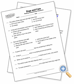 These are reading comprehension questions to go along with the passage. There are three types of questions that can be selected, and the page will be randomly filled with those types.