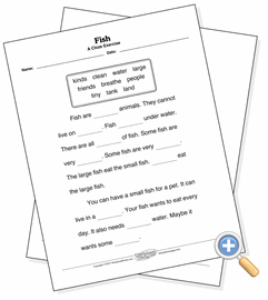 A cloze exercise is one in which certain words of a passage are removed and the student is required to put them back in the right place. This activity tests the student’s ability to understand the vocabulary and context. The words removed from the text are the vocabulary words from the reading.