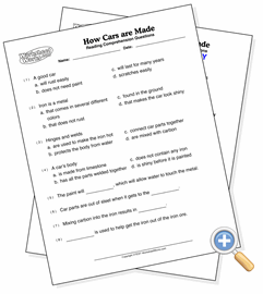 These are reading comprehension questions to go along with the passage. There are three types of questions that can be selected, and the page will be randomly filled with those types.