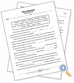 A cloze exercise is one in which certain words of a passage are removed and the student is required to put them back in the right place. This activity tests the student’s ability to understand the vocabulary and context. The words removed from the text are the vocabulary words from the reading.