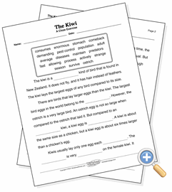 A cloze exercise is one in which certain words of a passage are removed and the student is required to put them back in the right place. This activity tests the student’s ability to understand the vocabulary and context. The words removed from the text are the vocabulary words from the reading.