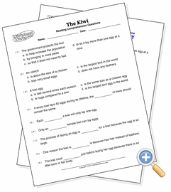 These are reading comprehension questions to go along with the passage. There are three types of questions that can be selected, and the page will be randomly filled with those types.