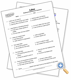 These are reading comprehension questions to go along with the passage. There are three types of questions that can be selected, and the page will be randomly filled with those types.