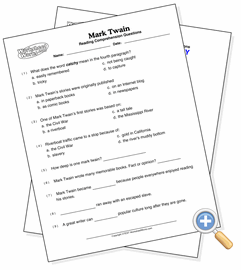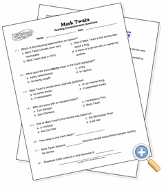 These are reading comprehension questions to go along with the passage. There are three types of questions that can be selected, and the page will be randomly filled with those types.
