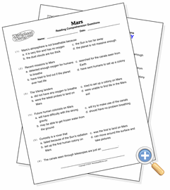 These are reading comprehension questions to go along with the passage. There are three types of questions that can be selected, and the page will be randomly filled with those types.
