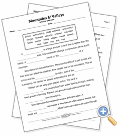 A cloze exercise is one in which certain words of a passage are removed and the student is required to put them back in the right place. This activity tests the student’s ability to understand the vocabulary and context. The words removed from the text are the vocabulary words from the reading.