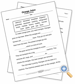 A cloze exercise is one in which certain words of a passage are removed and the student is required to put them back in the right place. This activity tests the student’s ability to understand the vocabulary and context. The words removed from the text are the vocabulary words from the reading.